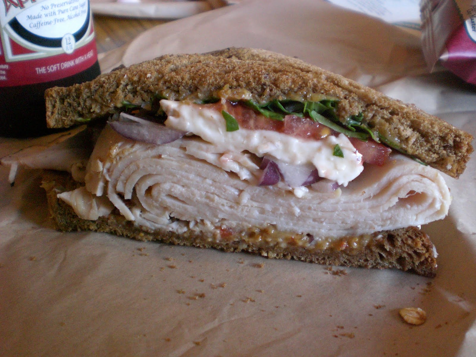 The turkey was delicious. Fresh and thinly sliced, this delicious deli meat was a generous portion stacked high on the sandwich.